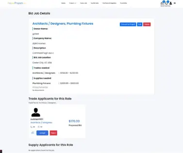 Post projects, connect with subcontractors, and get competitive bids for your projects.