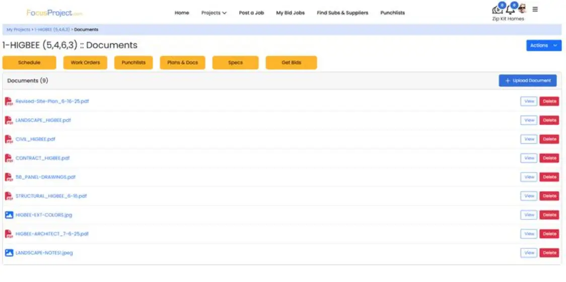 Blueprints, permits, specifications, and contracts—construction projects come with a lot of paperwork. The Documents & Plans module centralizes everything in one secure space. No more digging through emails or outdated files; your team always works from the latest version.